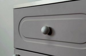 Корпус тумбы выполнен из ЛДСП толщиной 16 мм, фасады изготовлены из МДФ в плёнке ПВХ и декорированы фрезеровкой, подчёркивающей стиль серии Милана. Оригинальные круглые ручки и опоры дополняют дизайн, придавая мебели лёгкий и аккуратный внешний вид.