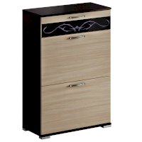 В тумбе 2 секции под обувь с полками, оборудованные газовыми кронштейнами и ящик на шариковых направляющих длиной 300 мм.